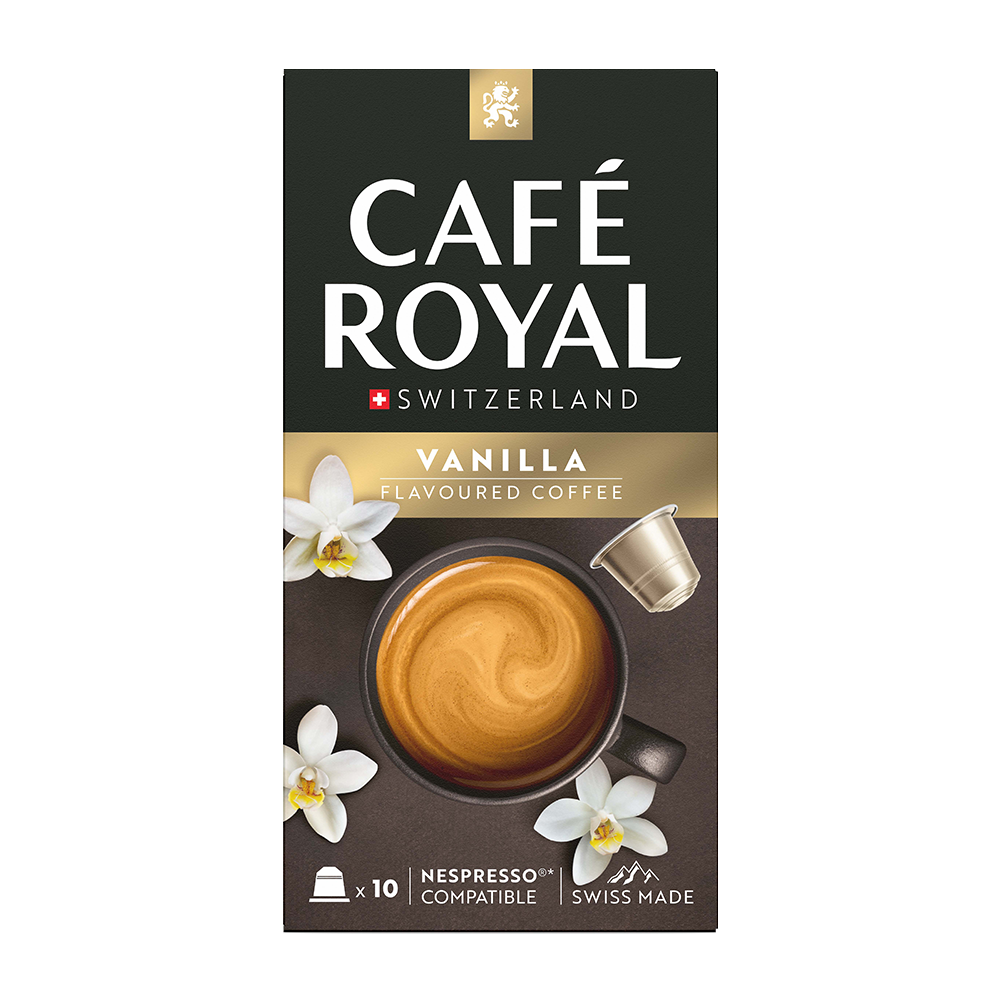 Savourez l’arôme léger et harmonieux du Café Royal Vanille. Le parfum sucré de la vanille complète l’arôme légèrement torréfié du café